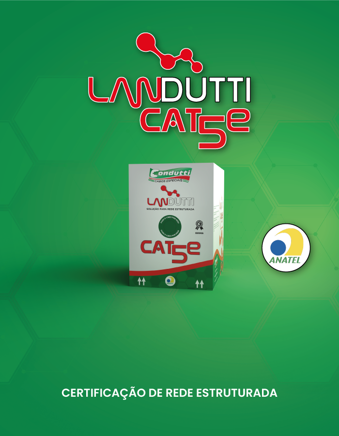 <CONDUTTI LANDUTTI> – <UTP CAT5e 4PR 24AWG PVC 70°C> – LSZH – TIA/EIA 568-D.2 & ISO/IEC 11801 CLASS D & IEC 60332-3-25 <LOTE> – <MARCAÇÃO MÉTRICA> – ANATEL: 06925-21-11616 – <DATA>